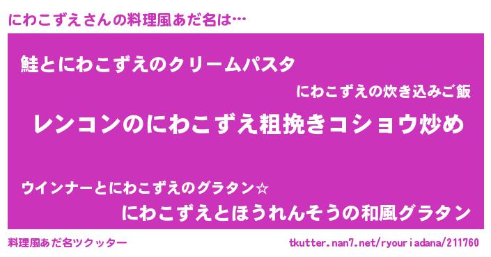 | 意味不明あだ名 | 『自称にわこずえ』 |