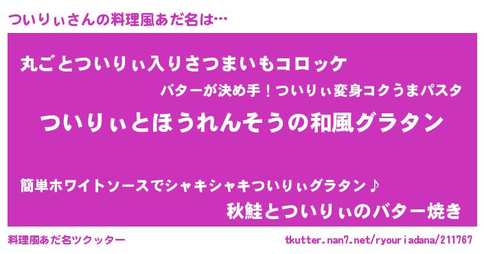 | ヒーロー風カッコイイあだ名 | 『仮面ツイダー』『ネオツイリィ』 |