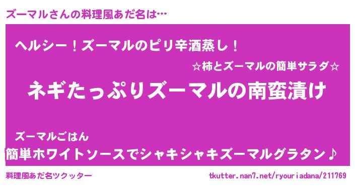 | 意味不明あだ名 | 『ペロリンズーマル』『自称ズーマル』 |