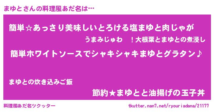 | ヘコむあだ名 | 『まゆっぺ』『まゆと(遠い目)』 |