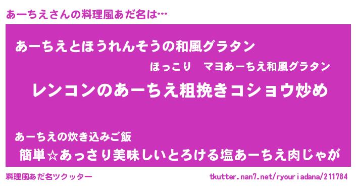 | ヘコむあだ名 | 『あーちえ(震え声)』『なまこ酢』 |
