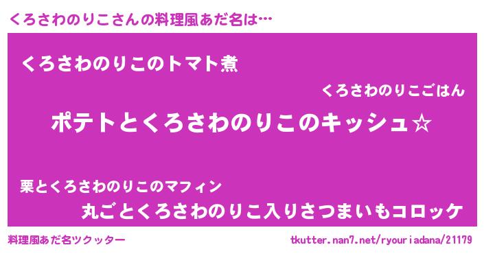 | 女子向けラノベタイトル風あだ名 | 『くろさわのりこの卵を拾いまして』 |