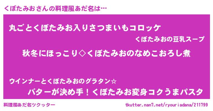 | 意味不明あだ名 | 『住所不定無職くぼたみお(50歳)』 |