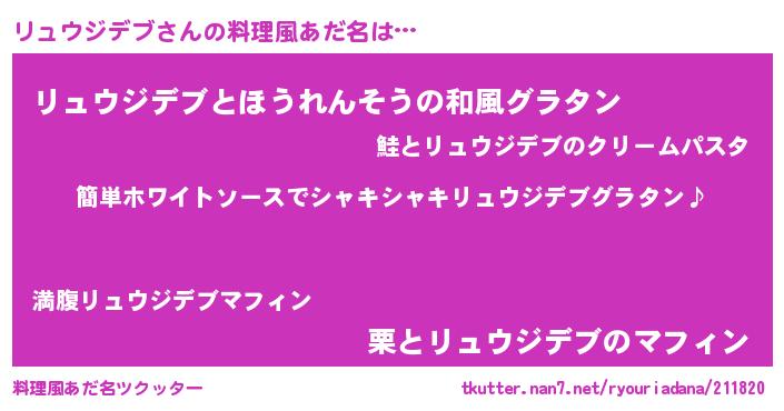 | 男性向けラノベタイトル風あだ名 | 『リュウジデブの嫁は女の子じゃないと思った?』 |