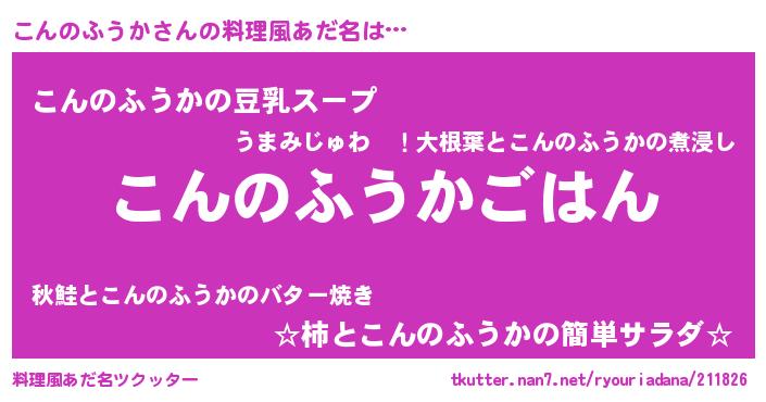 | 胡散臭い通販商品みたいなあだ名 | 『信頼と実績のサプリメント…その名も「こんのふうか」』 |