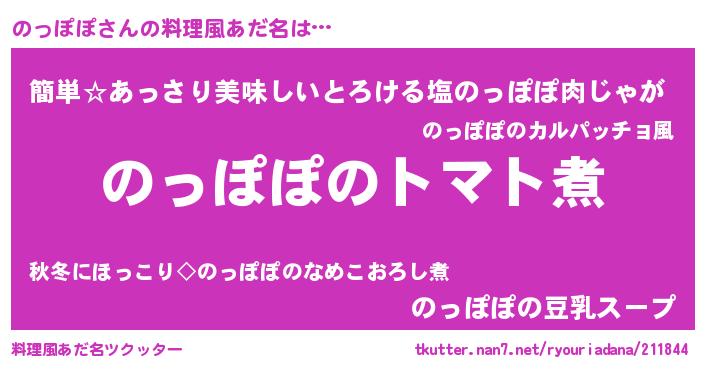 | 男性向けラノベタイトル風あだ名 | 『おまえをオタクにしてやるから、俺をのっぽぽにしてくれ! 』 |