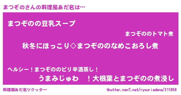 | ポケモン風あだ名 | 『マツゴンZ』『ヒマツゾノ』 |