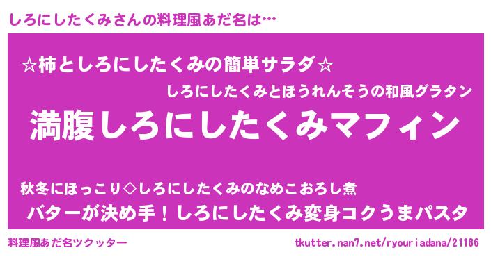 | ヘコむあだ名 | 『しろにしたくみ(遠い目)』『しろもー』 |