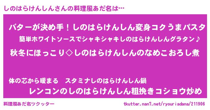 | 意味不明あだ名 | 『眠気覚ましガムしのはらけんしん味』 |