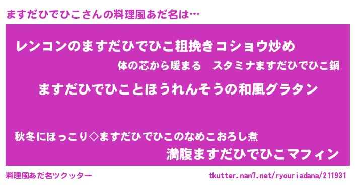 | 女子向けラノベタイトル風あだ名 | 『ますだひでひこの玉の輿計画!』 |