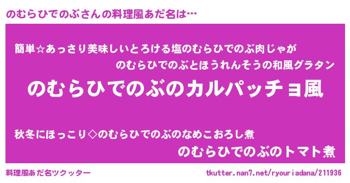 | 男性向けラノベタイトル風あだ名 | 『魔弾の王とのむらひでのぶ』 |