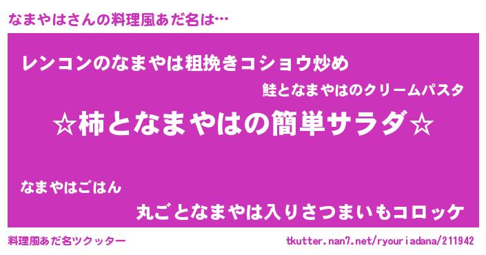 | ヒーロー風カッコイイあだ名 | 『超時空戦士ナマヤハ』『仮面ナマダー』 |
