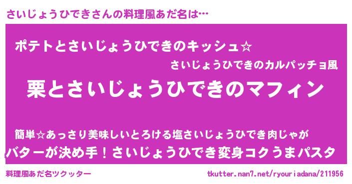 | ヘコむあだ名 | 『さいぷりん』『さいじょうひでき(笑)』 |