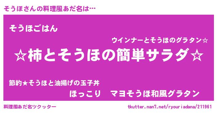 | ヘコむあだ名 | 『豆乳』『そうにー』『そうほ(苦笑)』 |