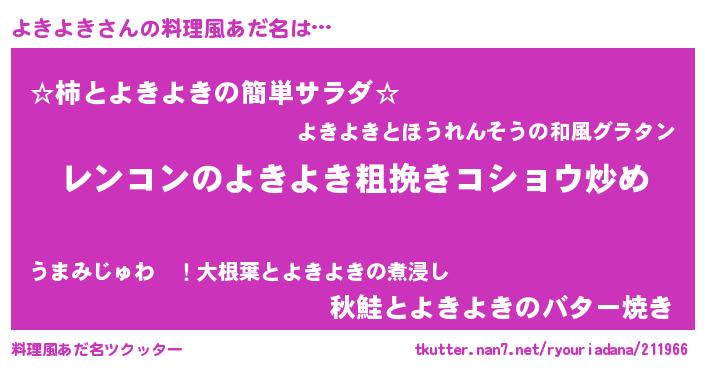 | 意味不明あだ名 | 『自称よきよき』『永久保存よきよき』 |