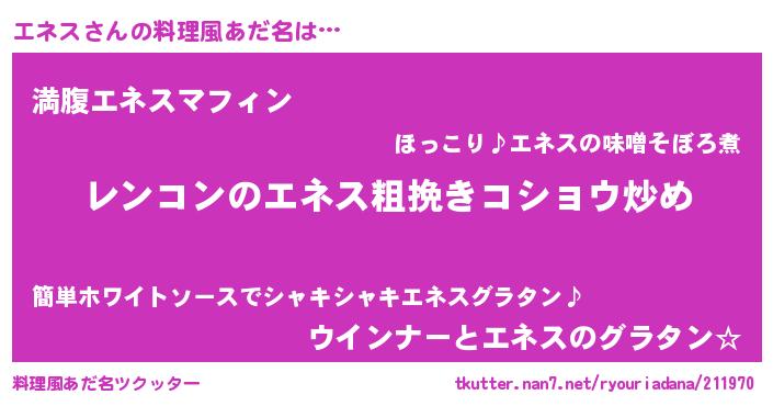 | ヘコむあだ名 | 『エネス(苦笑)』『牛乳』『エネを』 |