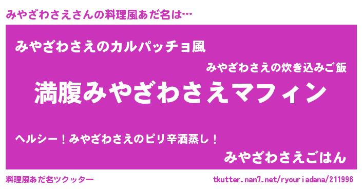| ヘコむあだ名 | 『みやざわさえ(遠い目)』『みや太郎』 |