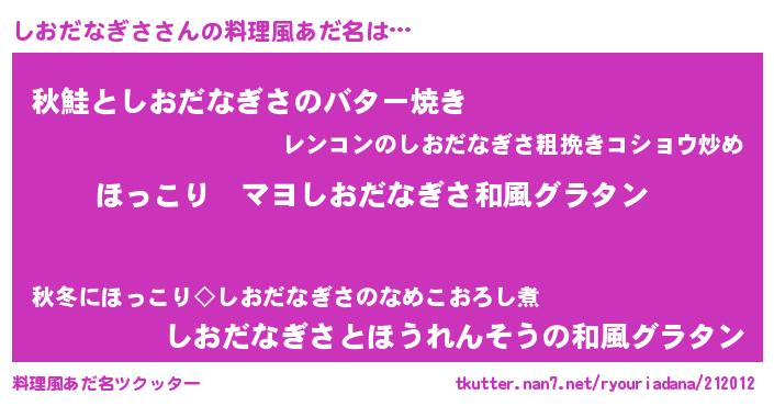 | 意味不明あだ名 | 『住所不定無職しおだなぎさ(98歳)』 |