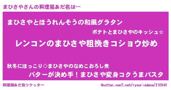 | 意味不明あだ名 | 『自称まひさや』『つくし科まひさや属』 |