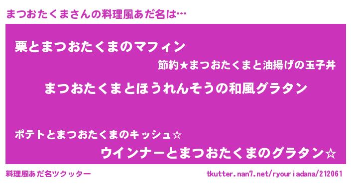 | 意味不明あだ名 | 『ニラ科まつおたくま属』 |