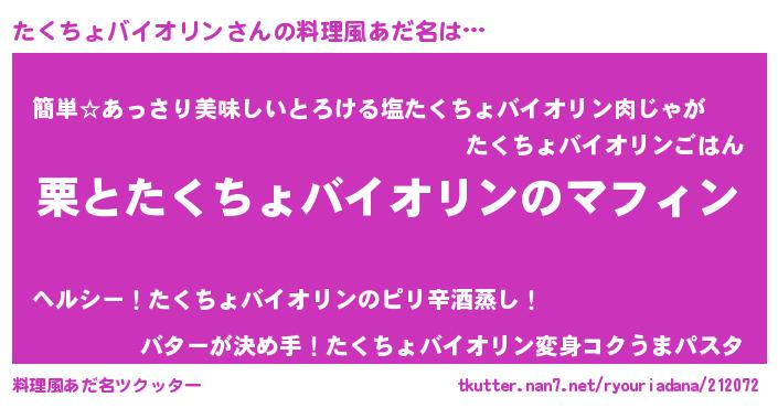 | 胡散臭い通販商品みたいなあだ名 | 『絶対に幸福をもたらす招き猫…その名も「たくちょバイオリン」』 |