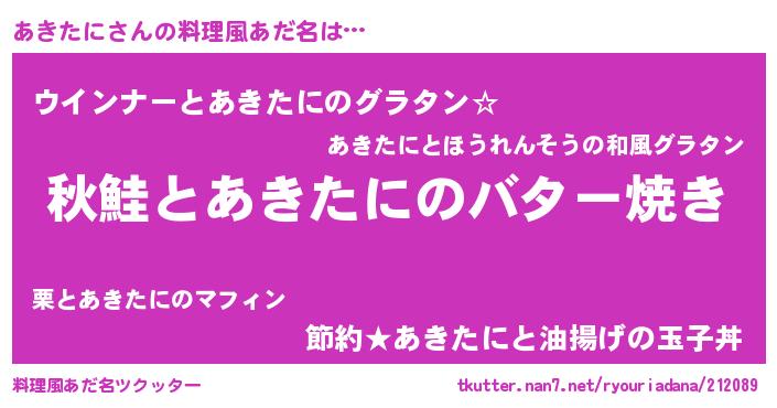 | 意味不明あだ名 | 『永久保存あきたに』『ペロリンあきたに』 |