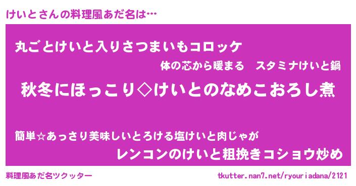 | 意味不明あだ名 | 『住所不定無職けいと(5歳)』『自称けいと』 |