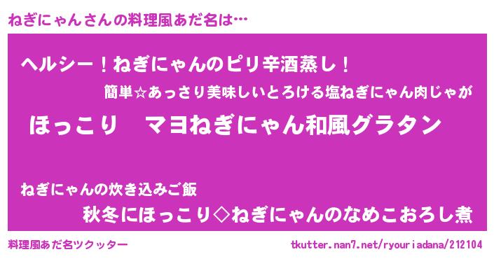 | ヘコむあだ名 | 『ねぎにゃん(遠い目)』『ねぎぷりん』 |
