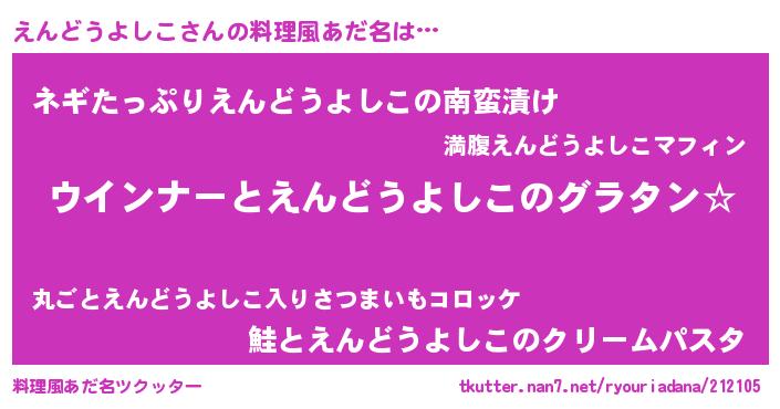 | 意味不明あだ名 | 『えんどうよしこフォーエバー』 |