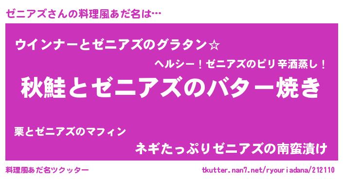 | ヘコむあだ名 | 『ゼニアズ(遠い目)』『なまこ酢』 |