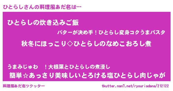 | 胡散臭い通販商品みたいなあだ名 | 『前代未聞の健康食品…その名も「ひとらし」』 |