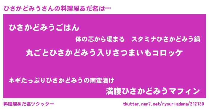 | 意味不明あだ名 | 『住所不定無職ひさかどみう(9歳)』 |