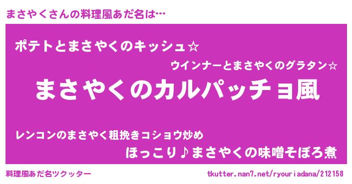 | 意味不明あだ名 | 『住所不定無職まさやく(12歳)』 |
