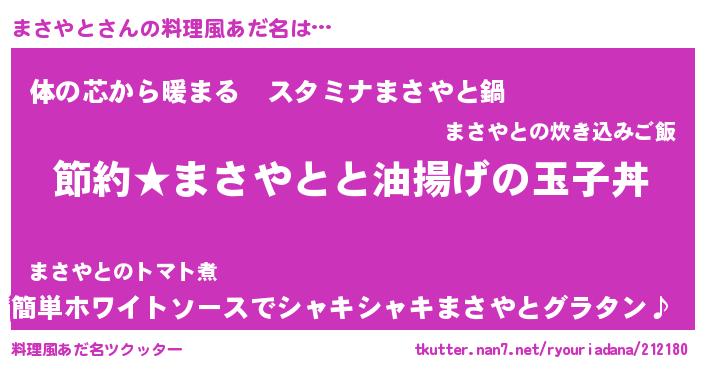 | 意味不明あだ名 | 『ペロリンまさやと』『永久保存まさやと』 |