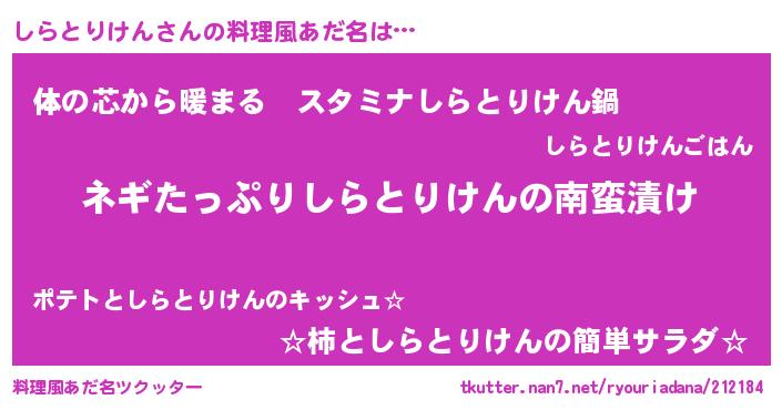 | 肩書あだ名 | 『しらとりけん社長』『しらとりけん艦長』 |