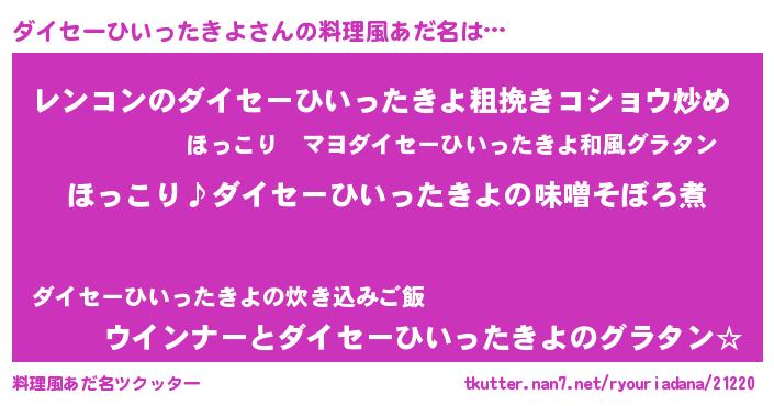 | 女子向けラノベタイトル風あだ名 | 『(仮)ダイセーひいったきよのやんごとなき事情』 |
