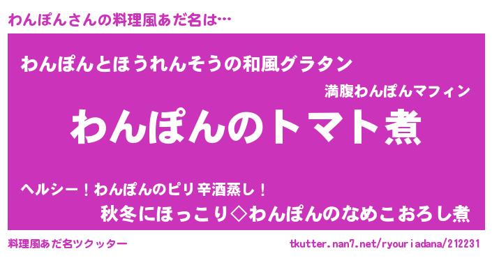 | ヘコむあだ名 | 『わんぽん(遠い目)』『わんっふぃ~』 |