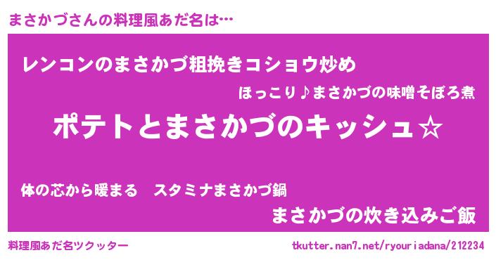 | 胡散臭い通販商品みたいなあだ名 | 『伝統あるサプリメント…その名も「まさかづ」』 |