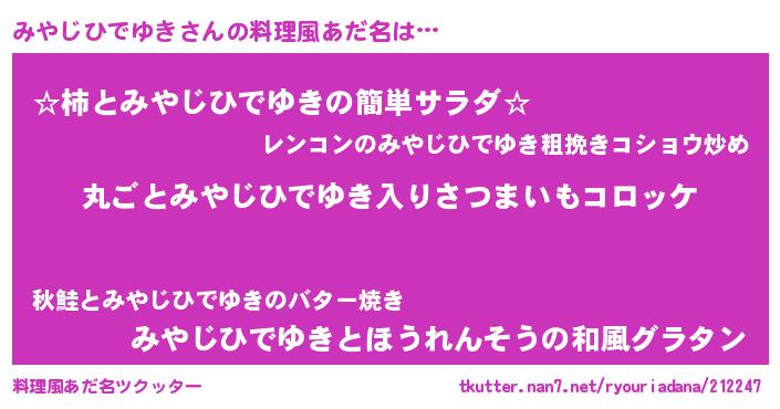 | 意味不明あだ名 | 『住所不定無職みやじひでゆき(3歳)』 |