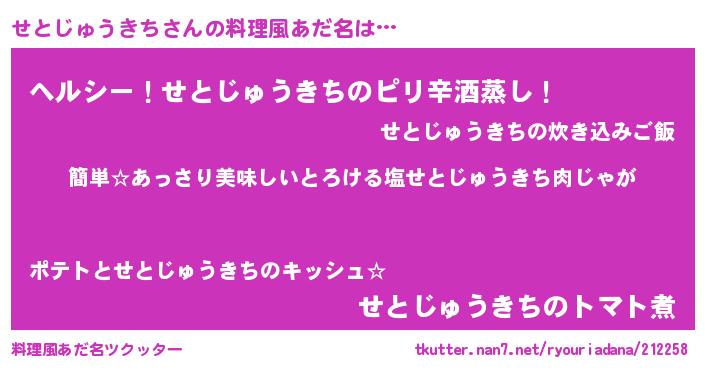 | 意味不明あだ名 | 『永久保存せとじゅうきち』 |