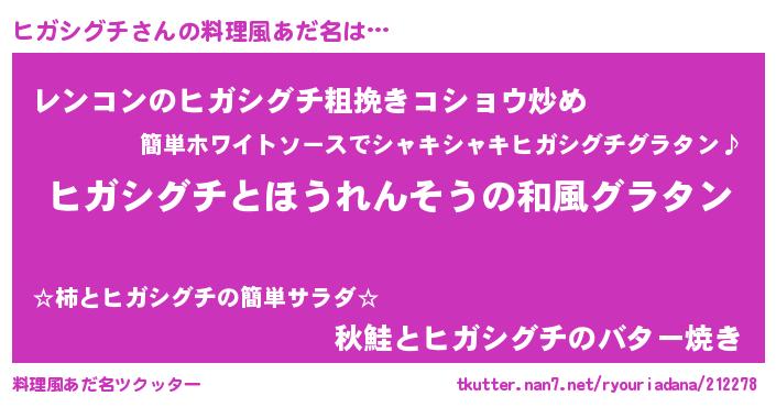 | ポケモン風あだ名 | 『ヒガキング』『ヒガセウス』 |