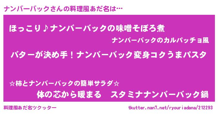 | 女子向けラノベタイトル風あだ名 | 『ナンバーバック恋絵巻』 |