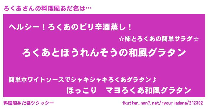 | ヒーロー風カッコイイあだ名 | 『最強戦士ロクア』『仮面ロクダー』 |