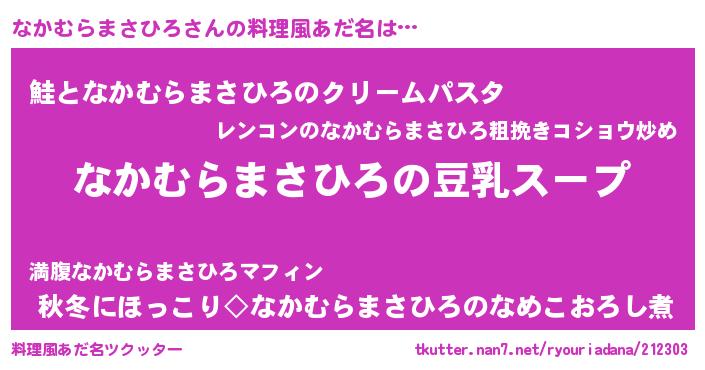 | 男性向けラノベタイトル風あだ名 | 『ダンジョンになかむらまさひろを求めるのは間違っているだろうか』 |
