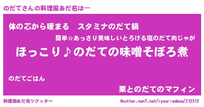 | ヒーロー風カッコイイあだ名 | 『スーパーノダテ』『ウルトラのだてマン』 |