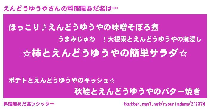 | ヘコむあだ名 | 『えんにゅー』『えんどうゆうや(遠い目)』 |