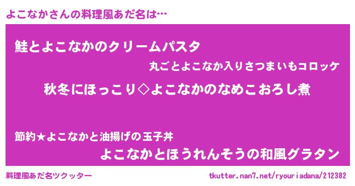 | 男性向けラノベタイトル風あだ名 | 『よこなかに滅ぼされるだけの簡単なお仕事です』 |