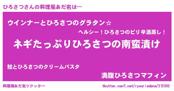 | ヘコむあだ名 | 『ひろにゅー』『つくし』『ひろを』 |