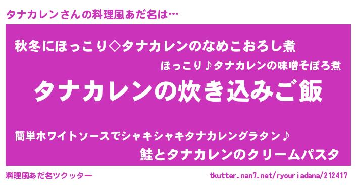 | ヘコむあだ名 | 『タナもー』『タナお』『なまこ酢』 |
