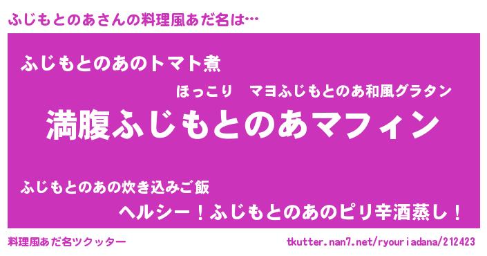 | 女子向けラノベタイトル風あだ名 | 『異世界で失敗しない100のふじもとのあ』 |